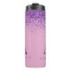 Moda purpurina rosa morado gentil moderno brillo monograma nombre inicial tumbler personalizado.
