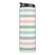 Nuestro tumbler de rayas estivales presenta amplias rayas horizontales en tonos pastel de menta, lomo de mar, melocotón y arena, con su monograma inicial en combinación con el agua.