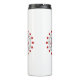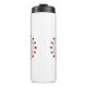 Este tumbler termal presenta su monograma en gris dentro de un círculo enmarcado con puntos negros y doble línea negra. En el exterior del marco negro hay un círculo de brillantes estrellas rojas. Su nombre está escrito en rojo coincidente sobre el monograma del centro gris. La imagen y el texto están en dos lados. ¡Muy distintivo!