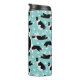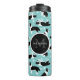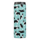 Los frisos de borde blanco y negro se sientan, se paran y se ponen con huellas de pata dispersas en un fondo azul con su propio monograma y nombre personalizado.