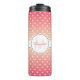 Este tumbler termal giratorio presenta un lindo patrón de puntos de polka en un fondo oscuro rosado. Personalízalo con un nombre y un monograma en color coincidente.