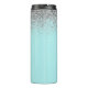 Taza para bebida con monograma de metal cepillado con purpurina brillante azul turquesa y plateado. Este regalo es perfecto para cumpleaños dulces 16, boda, despedida de soltera, aniversario, baby shower o fiesta de soltera para alguien que ama el lujo y los estilos chic y glamorosos.