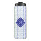 Tome sus bebidas para ir con este lindo tumbler termal de rayas de corazón de campo vintage con su monograma personalizado inicial o nombre. Este tierno tumbler térmico personalizado de corazones de este país vintage con monograma personalizado presenta un patrón repitiéndose a mano de corazones azules sobre un fondo blanco. Este lindo patrón de rayas de corazón es un patrón original hecho por OhMyStarling!