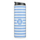 Monograma sobre un Tumbler térmico blanco y azul a rayas,