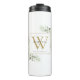 Elegante vegetación acuarela deja el nombre monogramo de tumbler térmico con un monograma de oro inicial. Diseñado por Thisisnotme©