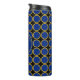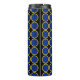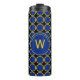 Elegante y moderno punto de polka BEBER TUMBLER en los colores de Barbados azul, amarillo y negro. En el centro, hay un monograma decorativo en tipografía amarilla, y hay un texto curvo de marcador de posición que dice BENDIGADO SER EL NOMBRE DEL SEÑOR. Este texto y el monograma son personalizables, por lo que puede cambiar según desee.