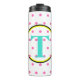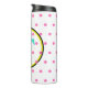 La polka rosa bonito sobre fondo blanco. Personalice con su primer texto en color turquesa monogramado en el centro del círculo negro amarillo. Frescos círculos geométricos de moda en los tumblers para su propio estilo único. Diversión para cualquiera que ame los puntos. Diseños originales © TamiraZDesigns. www.zazzle.com/tamirazdesigns