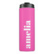 Tumbler térmico lindo con el nombre o las iniciales de su monograma en un popular tipo de letra blanca en negrita sobre un fondo rosado caliente. Puede ajustar el tamaño del texto en la herramienta de diseño para nombres más cortos o más largos.