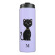 Termo Monograma y gato negro lindo en el ángulo ligero
