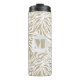 Un elegante tumbler termal presenta un patrón de impresión de animales salvajes de cebra tostado y blanco acentuado con su monograma inicial de moda. Crea por ti mismo o dámela como regalo.