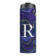 Crea tu propio monograma funda termal para ella. El fondo de arte digital presenta el color azul polvoriento, índigo, púrpura, marina, azul real y oro agate geode arte digital. Use un estilo de fuente diferente según sea necesario o agregue un nombre dado.