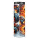 Esta dinámica obra de arte cuenta con múltiples camiones monstruo, predominantemente rojos y naranjas con calcomanías de llama, representadas en varias etapas de una carrera feroz. Cada camión tiene neumáticos masivos y está rodeado de intensas llamas, lo que sugiere velocidad y potencia. La perspectiva crea una sensación de profundidad y movimiento, con camiones cayendo en el fondo y las llamas esparciéndose por el lugar.