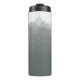 Tumbler termal con colinas de agua de color verde gris y ilustracion forestal.