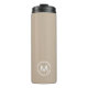 Este moderno diseño de tazas de viaje presenta un fondo beige con su monograma inicial en tipografía elegante para un aspecto sencillo y elegante, pero profesional.