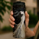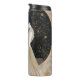 Lleva el cosmos contigo. Este tumbler de arte de stoltsm.design presenta un fascinante ilustracion de una mujer elegante que fluye a través de un cielo estrellado por la noche. Rodeada de notas musicales y acentos dorados, encarna la elegancia, el misterio y la energía divina femenina. Perfecto para creativos, soñadores y aquellos que encuentran belleza en las estrellas