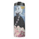 Termo Mujer elegante azul vestido floral de fantasía
