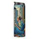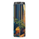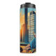 Mujer de arte pop al estilo de un libro de historietas de bonito mirando por la ventana de su ciudad tomando café, mirando la puesta de sol con su gato ensimismado.