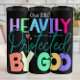 Este es un diseño gráfico vibrante que presenta la frase "PROTEGIDA DE FORMA ALTA POR DIOS" en un diseño multicolor y multicolor. El texto está ajustado en un fondo gris claro y simple. El diseño utiliza una combinación de fuentes en negrita y bloqueantes para "HEAVILY" y "BY DIOS" y un guión que fluye para "Protected". Cada palabra se representa en un color brillante diferente, y la palabra "Protegida" se acentúa con dos corazones rojos pequeños. La estética general es moderna, colorida y transmite un mensaje de fe y protección.