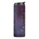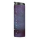 Tumbler térmico con las inspiradoras palabras "sueña, imagina, cree, crea" en letras mayúsculas violetas pastel frente a un cielo estrellado en la noche entre polvorientas nubes violetas y azules en el espacio nebuloso. Mística y mágica como el misterioso reino de los sueños. Utilice la plantilla de texto para agregar un nombre, palabras habilitantes o comillas inspiradoras. ♡ Idyllfire