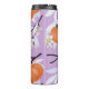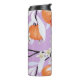 Elegante y moda monograma termal tumbler con hermoso patrón de mandarina. Ilustracion botánico floral con flores delicadas de primavera, ramas florecientes y cítricos. colores naranja, pastel y lila. Personaliza con tu inicial.
