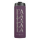 Si te estás preguntando qué combinaciones de colores elegir para tus decoraciones de Navidad y suministros de envoltorios de regalos este año, he creado colecciones de patrones coordinados para hacer la vida un poco más fácil. Esta taza térmica presenta un simple mensaje de tipografía de 'Fa La La La La' en vertical en el medio en un suave verde oliva sobre el color de fondo de su elección. Agregue su nombre utilizando la plantilla proporcionada. Busque ID1009 para ver otros productos y patrones en este esquema de color.