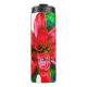 Navidades Bromeliad Thermal Tumbler con una imagen de una planta de Bromeliad roja. Las palabras del frente se pueden eliminar o cambiar.