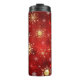 Termo Navidades Copos de nieve dorados con fondo rojo