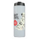 Saludos de vacaciones de tu raza de perro favorita. El tumbler térmico presenta perro dálmata con texto de "Feliz Navidad" y adorno de Navidad rojo.