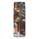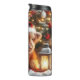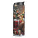 Este acogedor ilustracion de Navidades cuenta con un adorable y florido ternero de la Highland, de color marrón, vestido con un festivo sombrero de Santa Claus. El becerro está escondido en la nieve entre regalos envueltos, una linterna iluminada y un árbol de Navidad decorado con cálidas luces brillantes en el suave fondo. La escena refleja un espíritu vacacional acogedor y alegre.