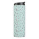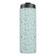 Hermoso tumbler termal para esta próxima temporada. El patrón de Navidades de elementos de regalos, estrellas y adornos está en blanco y negro mientras que el fondo está en un suave color verde azulado. Ilustrado y diseñado por Patricia Álvarez.