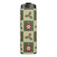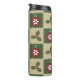 Cuatro plazas de color verde y marrón están adornadas con adornos rojos adornados con copos de nieve blancos y verde y con bayas rojas. El punzonado blanco aporta un toque decorativo, dando a la tónica repetida la apariencia de una colcha, creando un ambiente muy acogedor para las vacaciones de los Navidades.