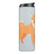 Saludos de vacaciones de tu raza de perro favorita. Perro Inu shiba con texto de "Feliz Navidad" y adorno de Navidad rojo.