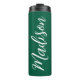 Un magnífico cazador de un tumbler termal verde con monograma blanco para un chica o un tipo que ama regalos simples y escritos a mano para Navidades. Hermoso guión cursivo en el costado de la botella que explica su nombre.