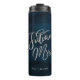 Diseño de acuarela azul oscuro, con tipografía de espuma plateada, y hermosa textura de fondo de acuarela. Con Fuentes Modernas De Guión De Moda. Un estilo moderno y lujoso - Monograma personalizado Sra. Thermal Tumbler! ~ Revisa mi tienda para ver toda la suite boda para este diseño!