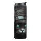 Gato negro con ojos verdes y gorra sobre tinta gótica morada de alcohol y fondo con motivos de estilo de argyle