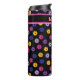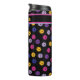 Rosa neón, amarillo y púrpura sobre el patrón de bola de picnic negro, inicial personalizado. Genial como regalo. Tumbler térmico con nombre personalizado en el lateral