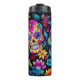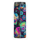 Mosaico cautivador de cráneos de azúcar coloridos bailando en la oscuridad. Dia De Los Muertos
