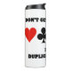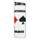 Muestra tu irónico doble sentido del humor del puente con este tumbler térmico que presenta los cuatro palos de cartas junto con el dicho "No consigas un doble puente de juego emocional". No hace falta ser un maestro de puente o un ávido jugador de puente para disfrutar de este vaso térmico con una dosis de consejos de puente sonoro hoy!