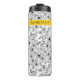 Un diseño floral de diseño y femenino con una estética de mano. Este clásico patrón blanco y negro tiene un aire moderno suavizado con el dibujo de líneas texturizadas. Personalizar este lindo vaso aislado con el nombre del propietario en amarillo para un detalle más personal.