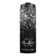Un fondo negro clásico con polvo de purpurina plateada falsa. Personaliza y añade tu nombre, iniciales de monograma y nombre completo.