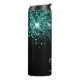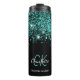 Un clásico fondo negro con polvo de brillo falso azul verdoso y verde mar. Personaliza y añade tu nombre, iniciales de monograma y nombre completo.