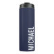 Diseño Minimalista moderno con un nombre personalizado en negrita moderna en blanco sans serif estilo de fuente sobre fondo azul marino. Perfecto como regalo de vacaciones para él, regalos del día del padre y regalos para cualquier ocasión especial.