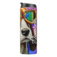 Beagle con gafas de sol sobre colores de arcoiris coloridos.