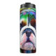 Funky Bulldog Retro con audífono con salpicaduras brillantes de colores arcoiris.