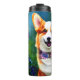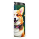 ¡Un espectáculo para contemplar este vibrante arte gráfico de un querido perro de corgi rodeado de una plétora de flores de colores!