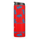 Añade tu nombre en esta silueta de dragones azules sobre el diseño de patrones de fondo rojo.