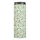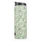 Hermoso patrón de vegetación de William Morris. Verde y marrón, fondo blanco, escudo negro con nombre personalizado. Elegante y refinado.