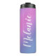 Tipografía de nombre gradiente colorido gradiente termal de café tumbler - Gráfico metalizado cepillado elegante con colores de gradiente rosa y morado. Personalice la plantilla de nombre de script de caligrafía de personalizado con su nombre de pila. Un regalo elegante para su cumpleaños, la caja de proposiciones de la dama de honor, el día de la madre, la fiesta de la soltera, etc.
