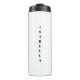 Minimalista serif personalizado personalizado negro y blanco, texto vertical de nombre o monograma moderno simple y elegante Tumbler térmico. Personalizable completo de texto negro, fondo blanco.