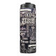 Tumbler termal diseñado inspirador con todos los nombres sorprendentes que describen a nuestro Señor y Salvador, Jesucristo. Hermoso texto impreso en blanco y negro de algunos de los asombrosos nombres de Nuestro Señor y Salvador Jesucristo.